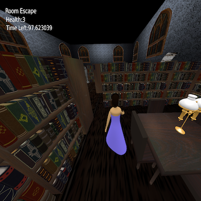 Room Escape is a simple game created in Blender where the player must use the arrow keys to move the avatar through the various levels and works on the general rules of an escape room. The player needs to collect clues scattered around the rooms by colliding with them and finally escape out of it.
